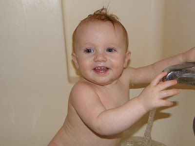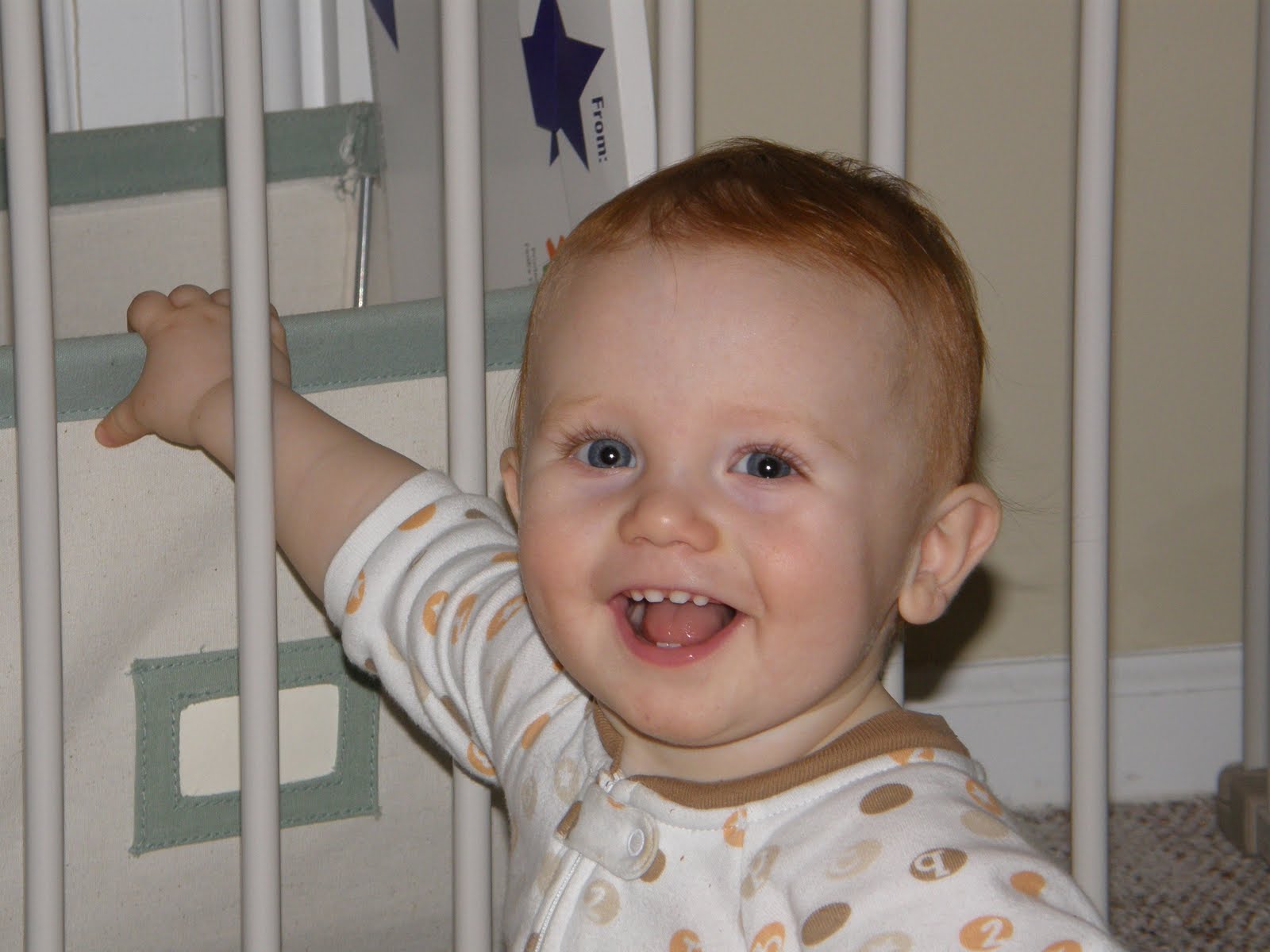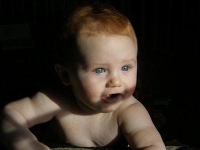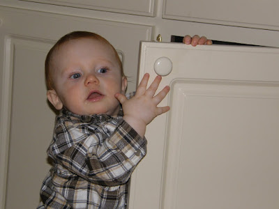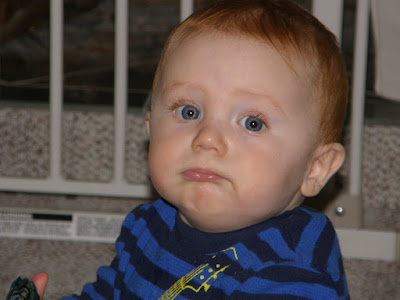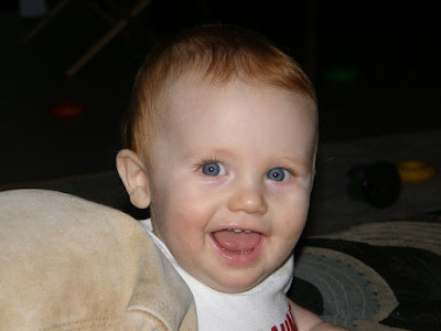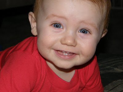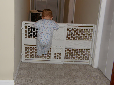 I couldn't decide again today so I am posting two pictures. The first was Thatcher trying to "escape" his domain this evening. I don't think it will be long until he figures out a way to get over that gate. The 2nd is just a pretty picture of my beautiful baby boy!