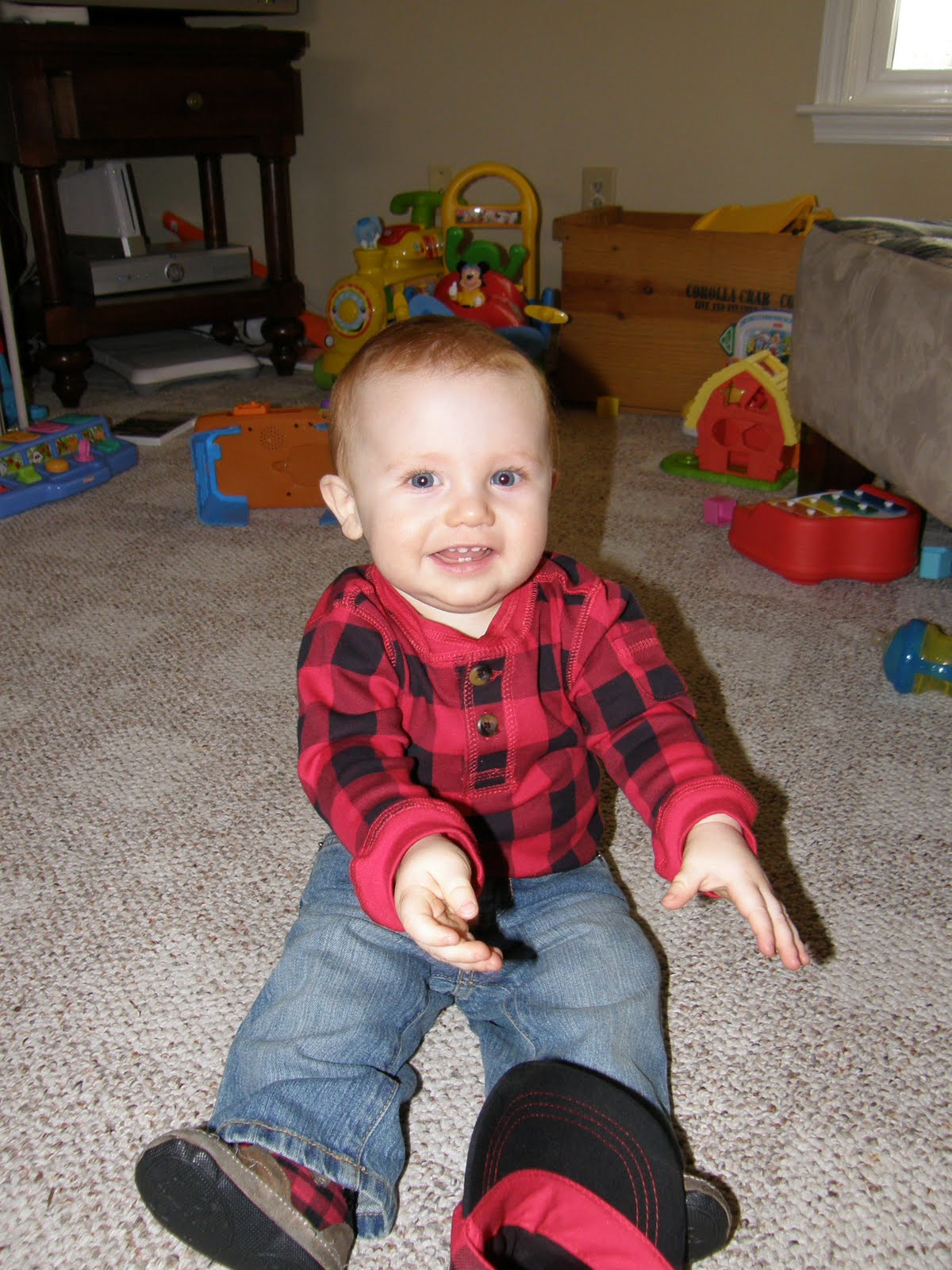 It's 1/1/11 and for my New Year's Resolution I decided to take on the Photo-A-Day project (or 365 project). Every day for the next year I will take one photo and post it to this blog. I've also decided to concentrate my focus and take only pictures of Thatcher. He's almost 10 months now, and when we are done he will be almost 22 months.... Let's watch him GROW!