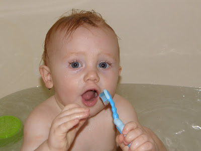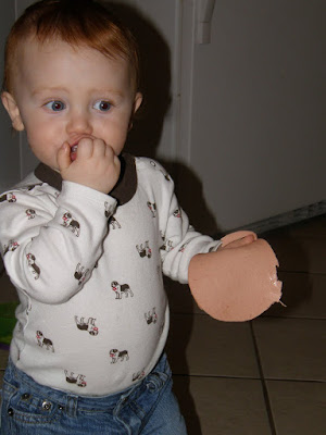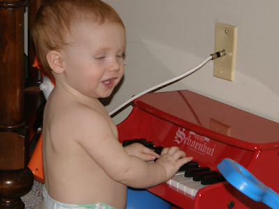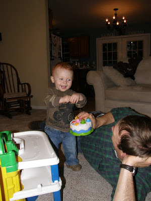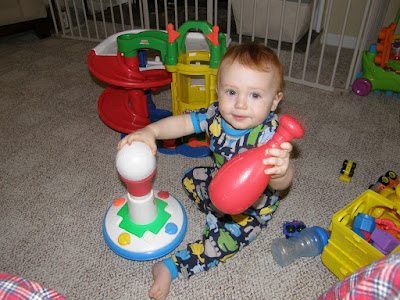 Thatcher started "Dancing" today to the birthday song that his cake toy plays. The picture doesn't really do it justice... but it's pretty darn cute!