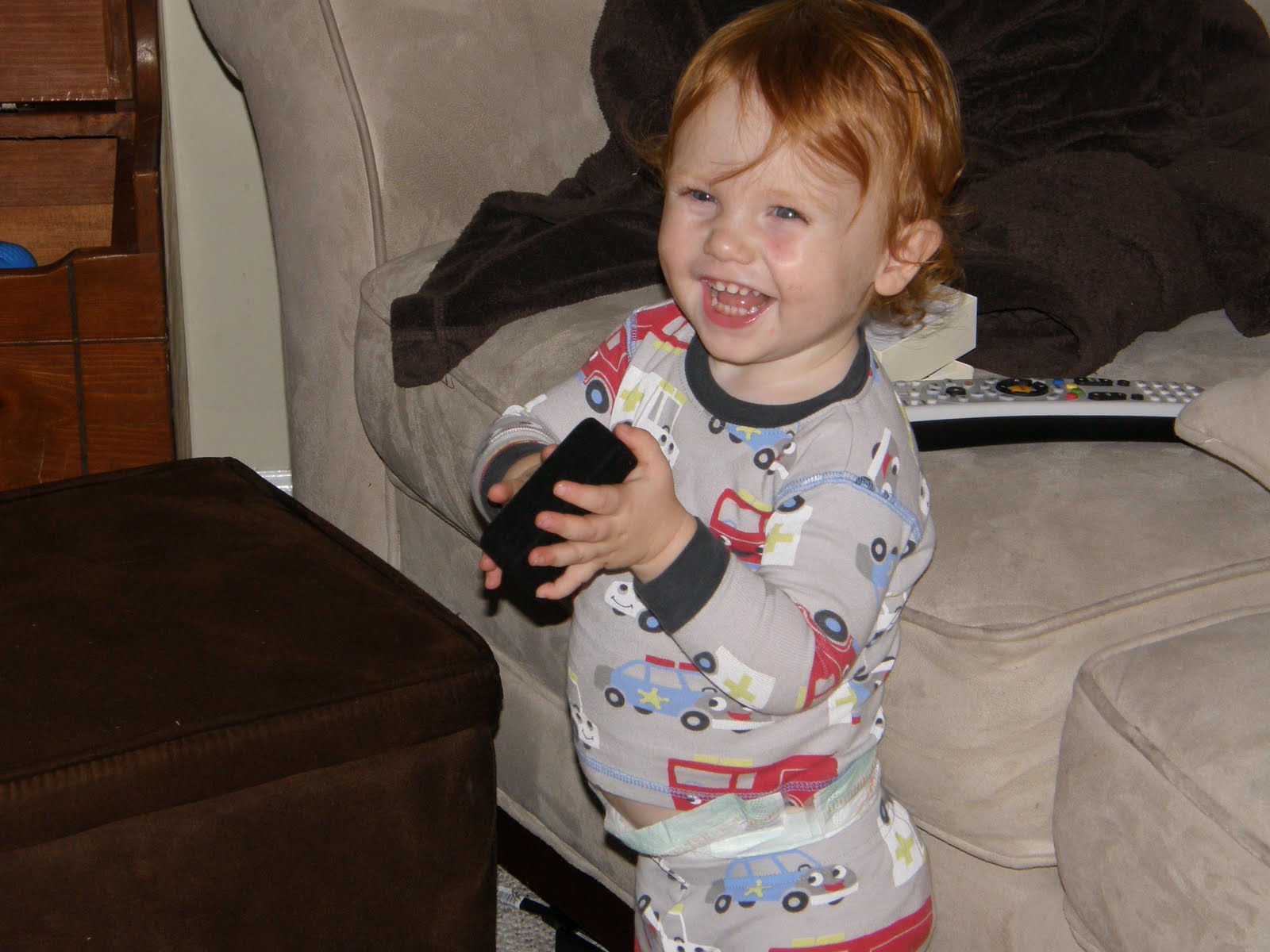 Before bed tonight Thatcher crawled into the pack-n-play that is at the foot our bed and played peak-a-boo. He would crouch down so we couldn't see him and the pop up all excited that he "fooled" us.