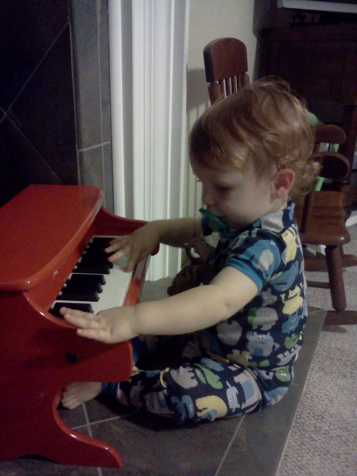 Thatcher is still awake at 9:15.... But making beautiful music!