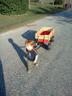 Thatcher wanted to pull the wagon this afternoon instead of being pulled. He thinks he's such a big boy already!