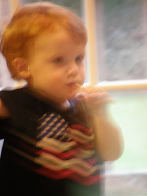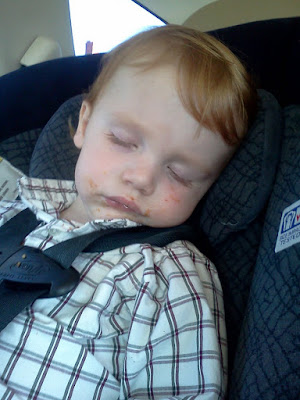 Thatcher fell asleep in the middle of eating his cereal bar this afternoon after church... looks like it tasted really good!