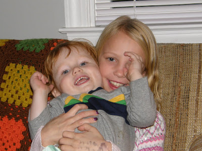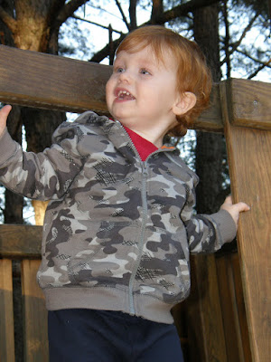 I know this looks like a cheesy posed picture but it actually isn't. After church today I was watching Thatcher and Brian pick bark off of that tree, I picked up my camera and then they turned to me! I LOVE IT though!!