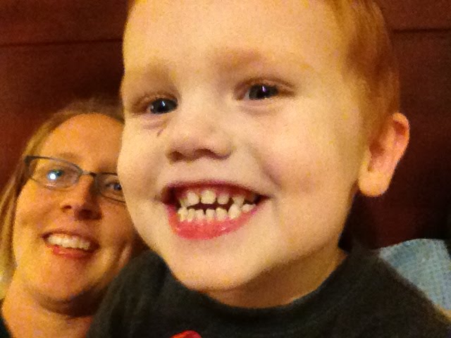 I apologize for the blurry picture but it's the best I got on my phone and I refuse to spend $23 for one picture!!!! We plan go to see Santa again at another location where a picture is free ;) Thatcher was a little unsure about sitting on Santa's lap but warmed up quickly! He even remembered to tell Santa that he wanted the "Loop de Loop thing"