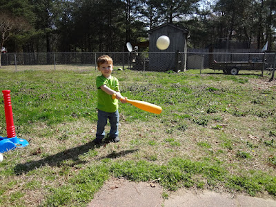 Baseball is Thatcher's new obsession. For the last 3 days it's about all he wants to do while outside! It's GREAT!