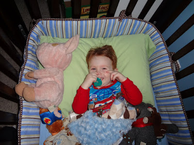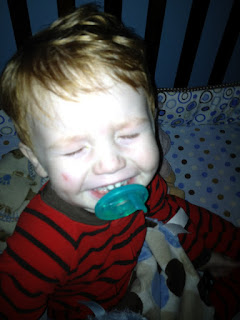 Thatcher insisted on wearing his Monster PJ tops and Thomas PJ bottoms tonight... I guess the greens kinda match..