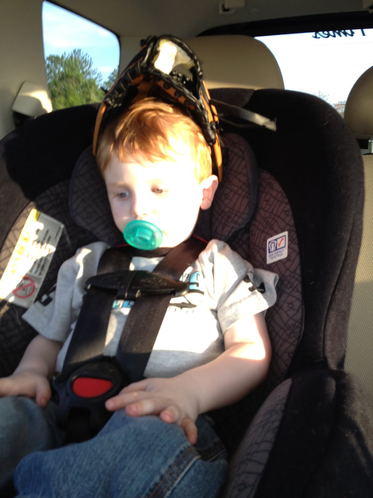 We went for a walk this evening over at the Christian Retreat Center when Thatcher insisted on having a helmet... It wasn't quite what he was asking for but Daddy's hat did the trick