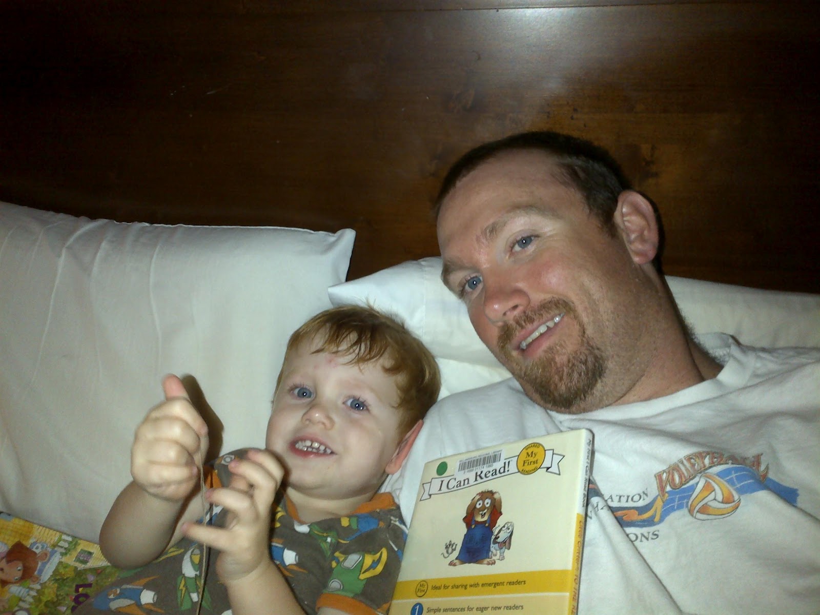 I'm sorry for the delay for these pictures.. I had no idea that Friday and Saturday's pictures didn't post untl just a little bit ago... So here is Friday's picture of Thatcher and Brian reading before bedtime while mommy was at Bunco!