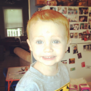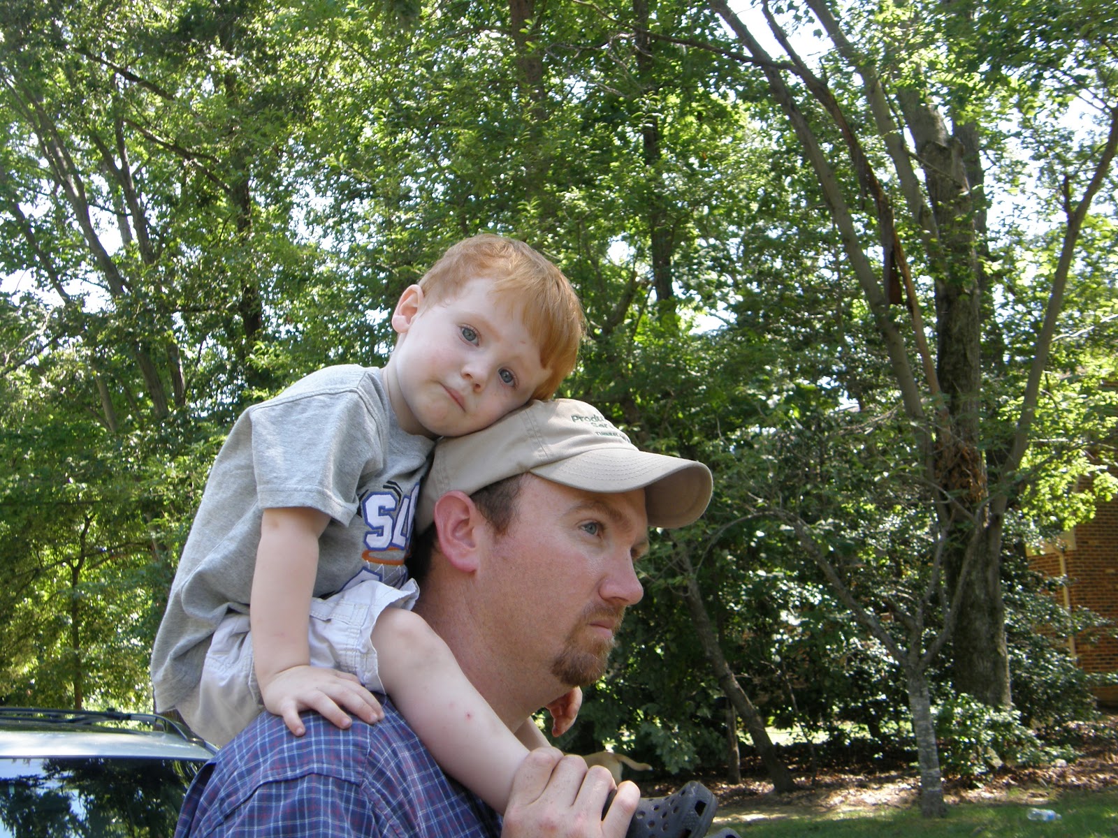 Thatcher was starting to slip into a Benadryl coma after being stung by a bee twice while watching the guys take the tree off Grandma and Pap's house.