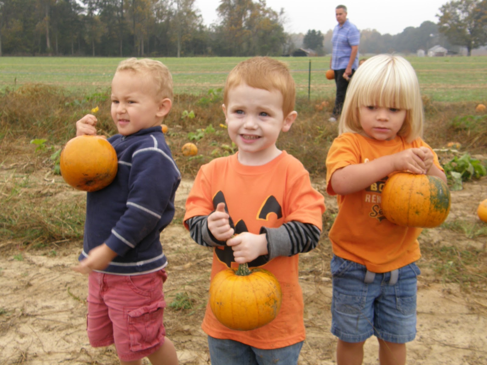 Thatcher went on his first Field Trip with his class today to Holly Fork Farm. Here is a picture of Liam, Thatcher, and Aiden after picking their pumkins that they got to take home!
